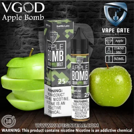 VGOD Salt Apple Bomb Iced Sour Apple Belt, klasik tatlı ve ekşi elmalı şekerlemenin buzla harmanlanmış halidir. VGOD’un Apple Bomb’u